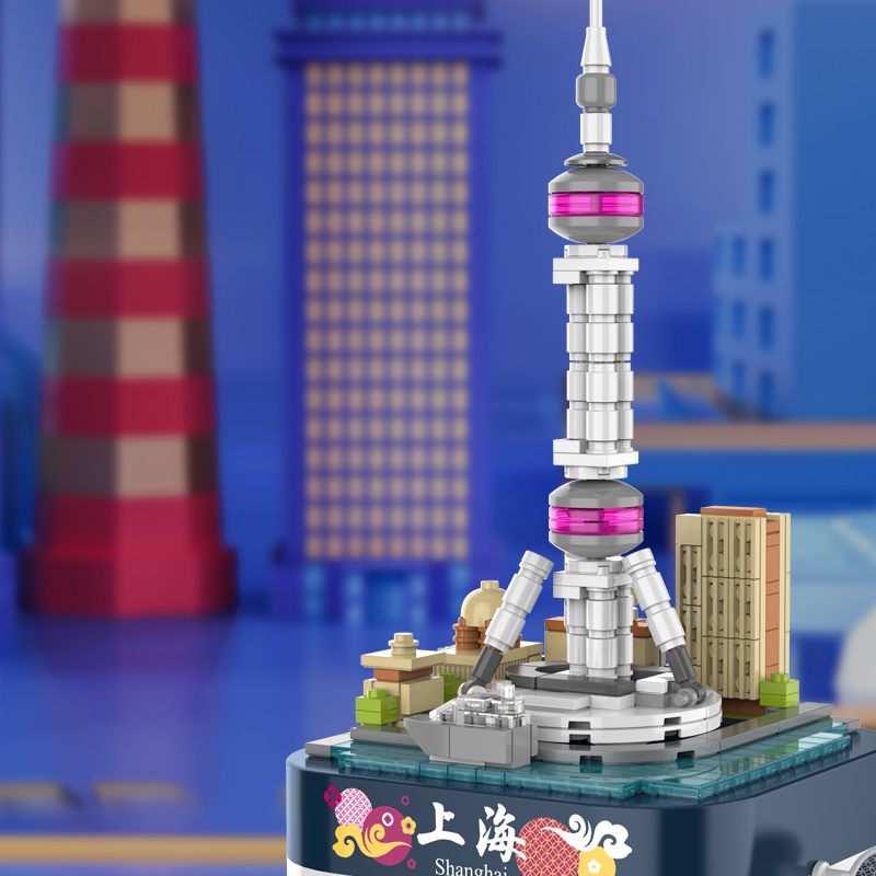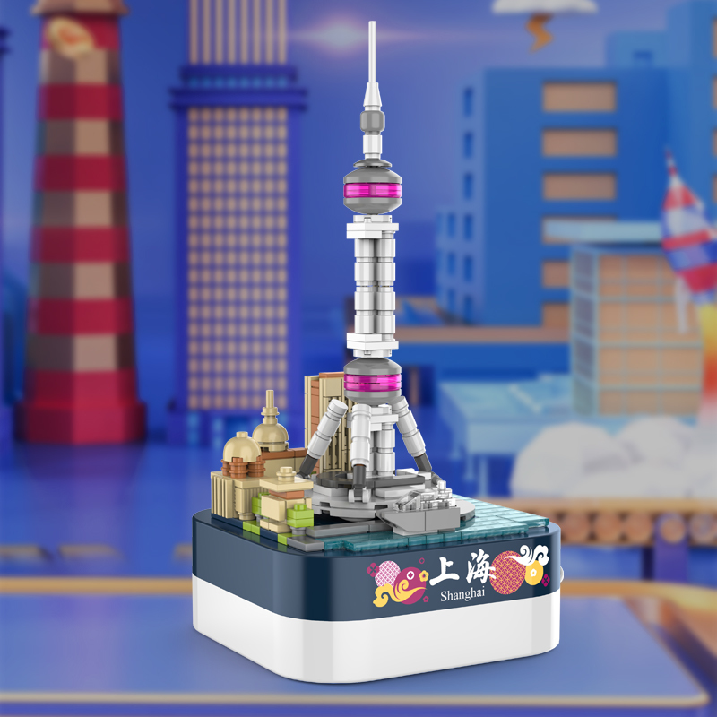 屹立于上海的東方明珠廣播電視塔,絕對(duì)是代表國(guó)家繁榮進(jìn)步的標(biāo)志性建筑。轉(zhuǎn)動(dòng)發(fā)條,整座塔在音樂下旋轉(zhuǎn),歌頌東方明珠的偉績(jī)。