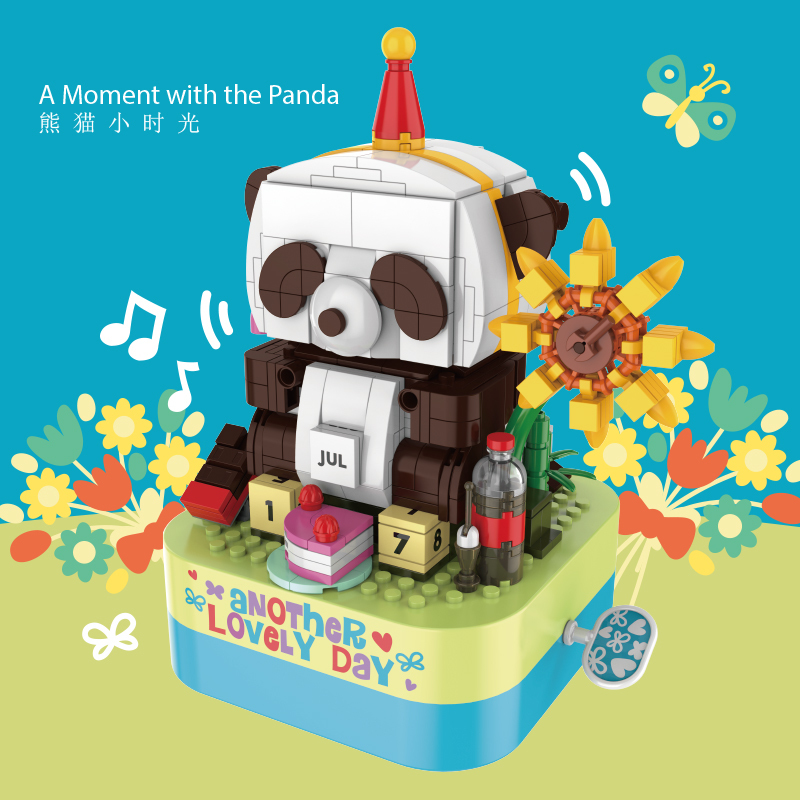 將積木與音樂盒完美結合,好玩又時尚。純機械動力設計更環保,音樂盒發條轉動帶動熊貓輕搖頭部,益智拼搭,時尚美觀,還能充當家居精品擺件。
