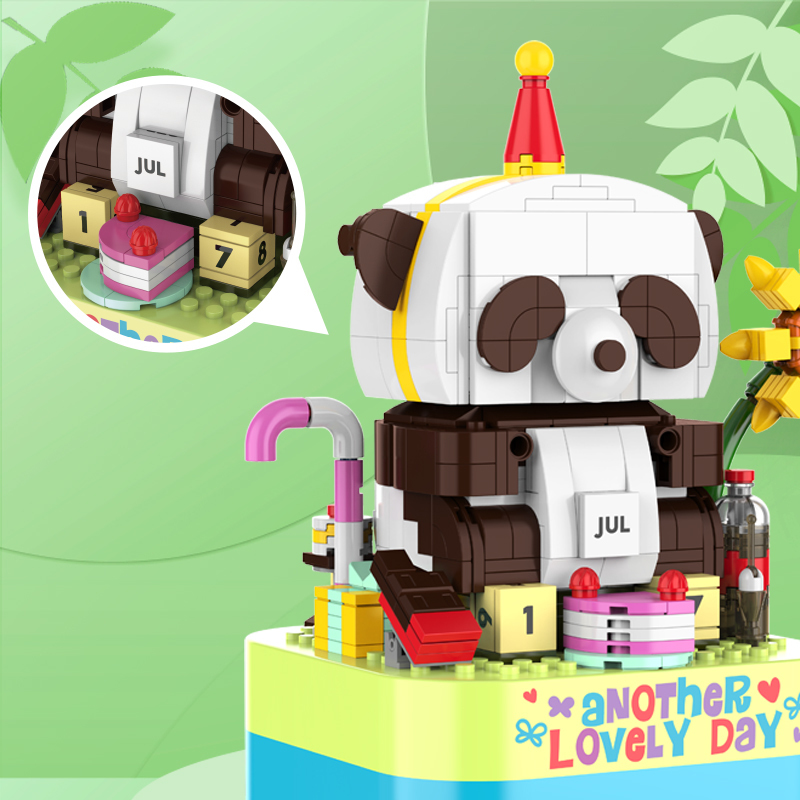 小熊貓隨著音樂輕搖頭部。在綠油油草地上戴著派對帽、準備了豐富的甜點和飲料,為的就是慶祝每一天的到來! 這小擺設同時也是萬年歷,提醒我們為每天歡呼喝采。